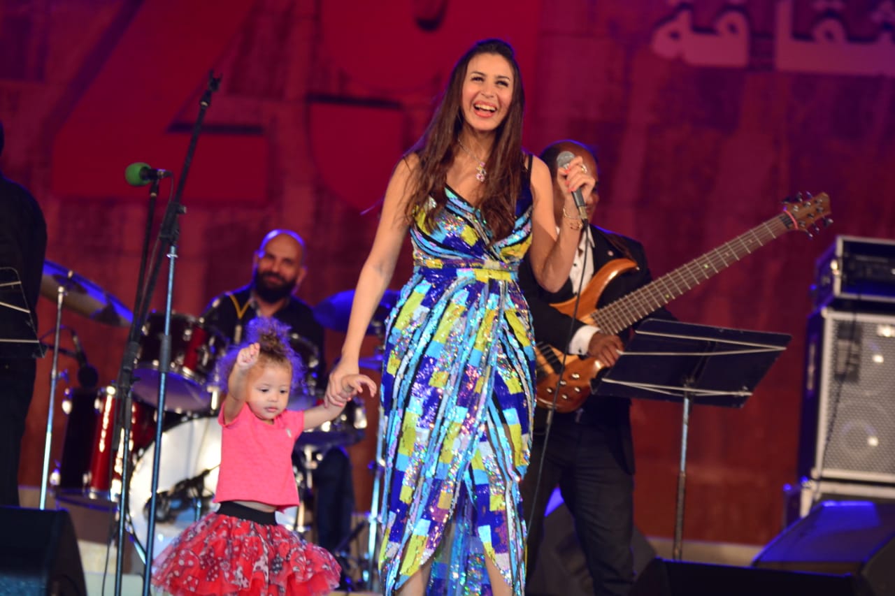وصعدت إبنة النجمة جنات على خشبة مسرح محكى القلعة في الحفل الذي تحييه والدتها على هامش مهرجان القلعة وسط هتاف كبير من الجمهور وقالت جنات: “بنتي عاوزة تسلم عليكم”.