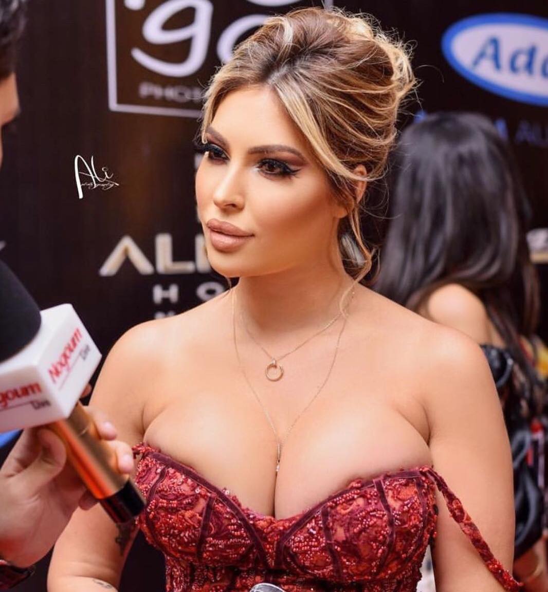 وظهرت مريم الدباغ في الصورة بفستان جريء جداً في مهرجان أوسكار العرب الذي أقيم منذ أيام في أحد الفنادق في القاهرة .