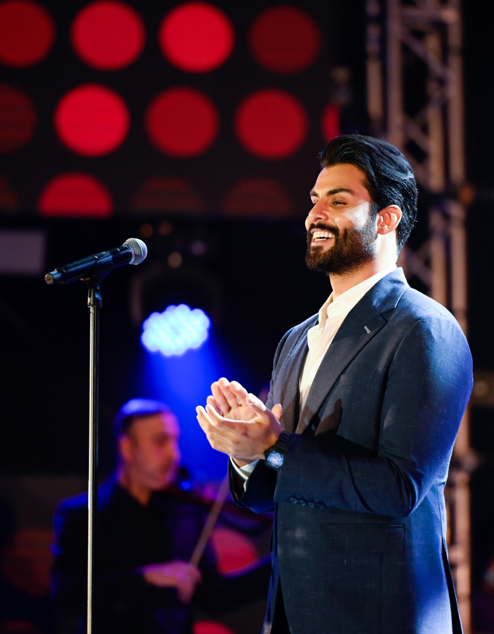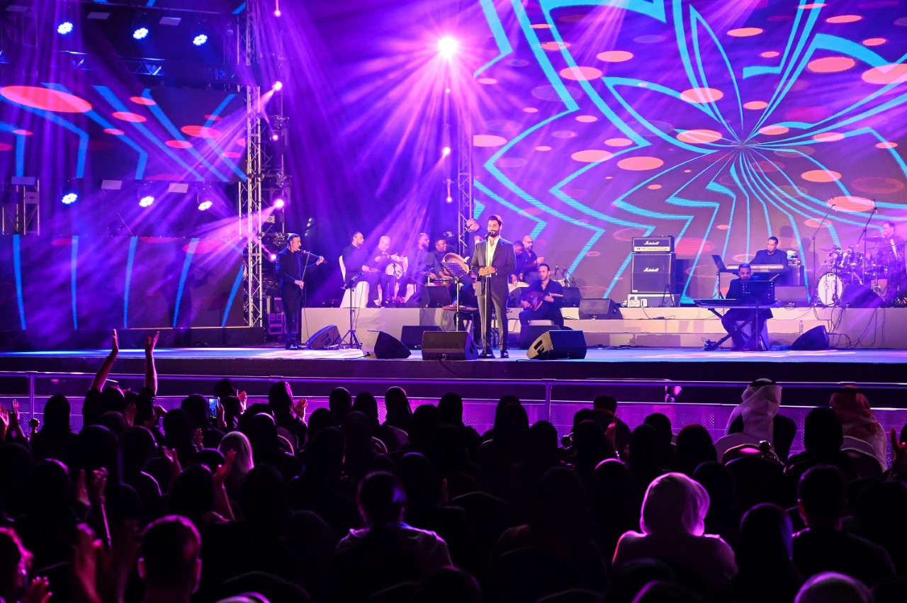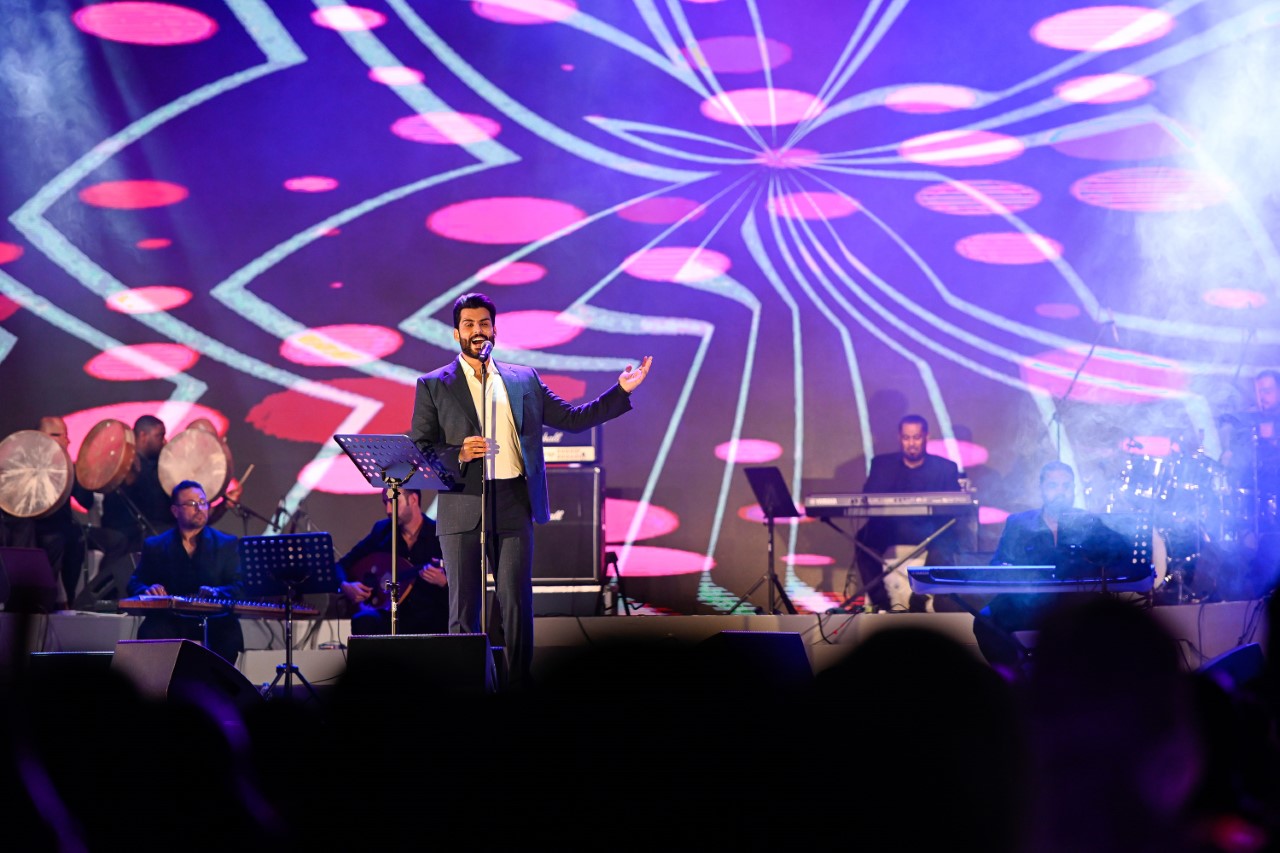 وما أن أطل محمود التركي على المسرح، استقبله الجمهور بعبارات الترحيب والتصفيق والصيحات التي عبرت عن محبتهم، ليتنقل برفقة فرقته الموسيقية التي تضمن أهم العازفين وأشهر في الوطن العربي بقيادة المايسترو هيثم سعدون، عبر مجموعة من الأغنيات، من بينها أغنية “اشمك” التي يحفظها الجمهور، وأغنية “تعال اشبعك حب أشبعك دلال” والأغاني “فقدت الناس، تدرون شقلّي”، وغيرها من أهم أغنياته.