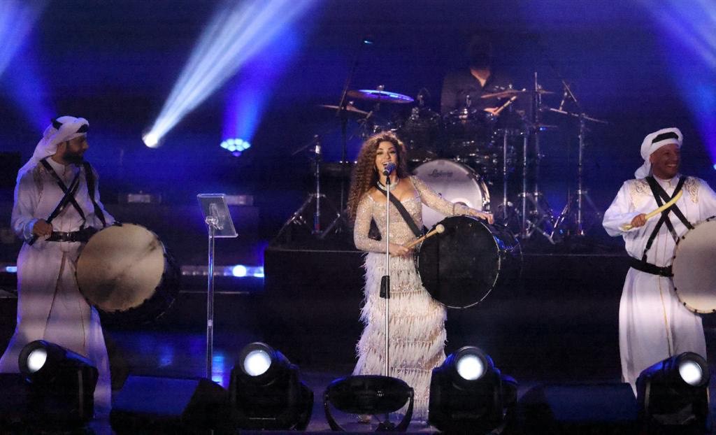 وعبر إطلالة مميزة وفريدة، قدمت ميريام فارس خلطة غنائية بين اللبنانية والخليجية والعراقية على ايقاع الجوبي العراقي الشهير، وسط حضور فرقة فنية شاركها عزف الإيقاع على المسرح.