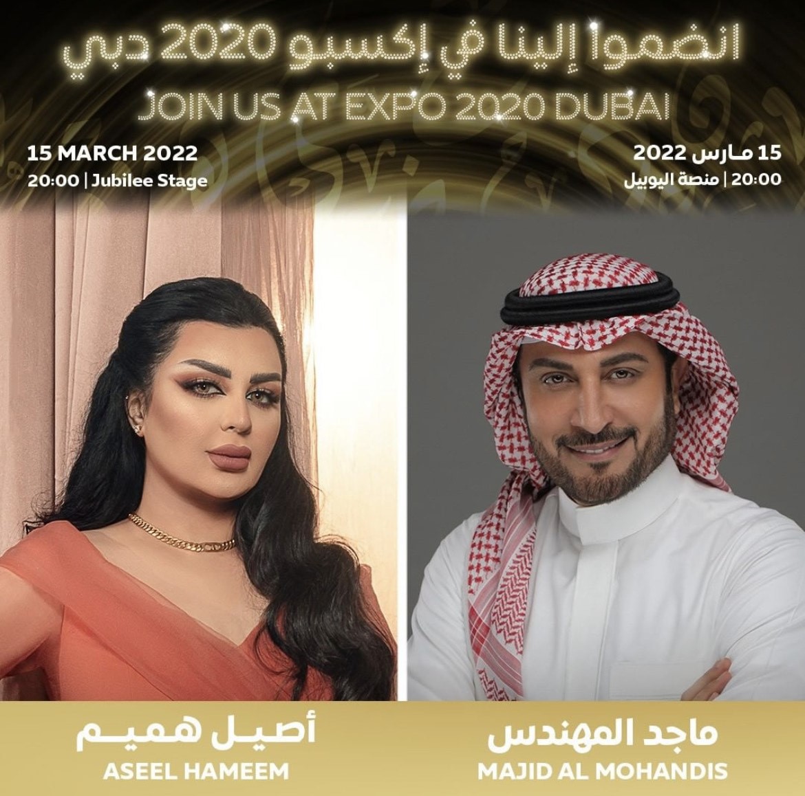 بات الفنان ماجد المهندس والفنانة أصيل هميم جاهزان لإحياء الجلسة الغنائية الأخيرة ضمن حفلات “جلسات في إكسبو”، والمقرر إقامتها على مسرح اليوبيل في معرض “إكسبو 2020 دبي” بالتعاون مع المنتج والمخرج صلاح الياسري الذي قام بتجهيز جميع الإمكانيات من خلال “الياسري للإنتاج الفني”، حيث انتهى من وضع جميع اللمسات الأخيرة لإخراج الحفل على أكمل وجه أمام الجمهور الكبير المتوقع تدفقه إلى ساحة مسرح اليوبيل يوم الثلاثاء المقبل، الموافق 15 مارس/آذار 2022.