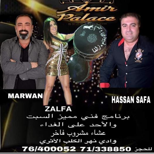 ما زالت أجواء ” مطعم ” أمير بالاس ” – وادي نهر الكلب الأثري لصاحبه الأستاذ هشام الأمير تتألّق بأجمل البرامج الغنيّة وبكثافة الساهرين الذين يؤمونه من مختلف المناطق لتمضية سهرة من أجمل ليالي العمر.