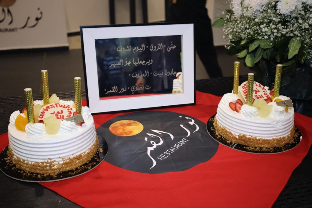 في جوّ جميل وراقٍ، إفتتح السيد إيلي معلوف وزوجته السيدة فيوليت مطعمهما " نور القمر " - زوق مكايل بحضور نخبة من أهل الفنّ والصحافة والأصدقاء. وقصّ صاحبا المطعم شريط الإفتتاح ودخلا الصالة برفقة المدعويين على وقع الموسيقى ، وقطعوا معًا قالب الحلوى المُعدّ للمناسبة. كما غنّى بعض الفنّانين وصلات غنائية ، إبتهاجًا بالإفتتاح المميّز وإيذانًا ببدء البرامج الغنائية التي تبدأ كل ليلة جمعة وسبت وظهر الاحد . وأشاد المدعوون بمزايا مطعم " نور القمر " وبكرم صاحبيه وبلقمته الشهيّة وحُسن الإستقبال والخدمة السريعة والمريحة. وباركوا للسيد معلوف وزوجته فيوليت بهذا الإفتتاح الجميل وتمنّوا لهما النجاح والديمومة بعملهما المثمر. موقع " حلو الفن " يبارك ، بدوره ، للسيد ايلي معلوف وزوجته السيدة فيوليت ويتمنّى لهما التوفيق والنجاح والإستمرارية. إضغط على الصورة لتكبيرها