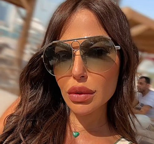 وظهرت الفنانة ليليا وهي مبتسمة مرتدية نظارات شمسية ووضعت مكياج هادئ يختلف عما سبق.