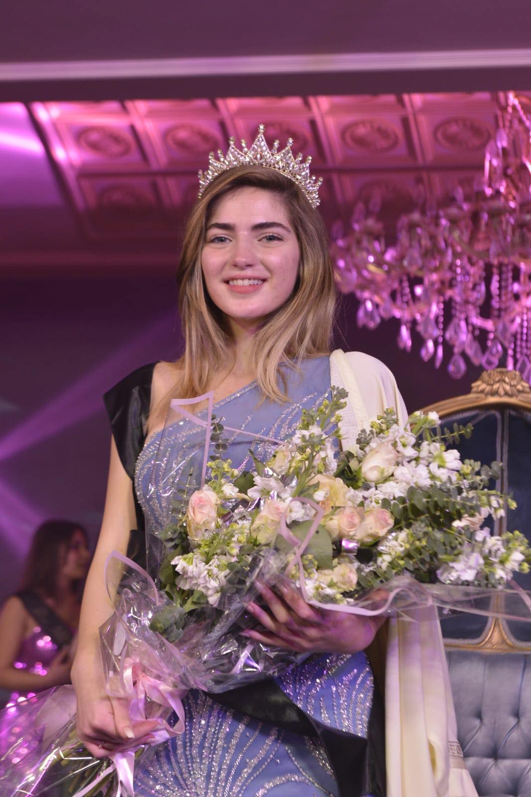 ١٦ مشتركة تبارين على المسرح فتألقن بفساتين سهرة حملت توقيع المصممة فرح نحلة وبعد مرورهن، اختارت اللجنة عشرة منهن ، ثم بعد ذلك تأهلت خمس مشتركات للمرحلة النهائية وطرح عليهن السؤال الموحد مفاده: إذا حصلت على التاج ما هي الرسالة التي ستحملينها للعالم؟