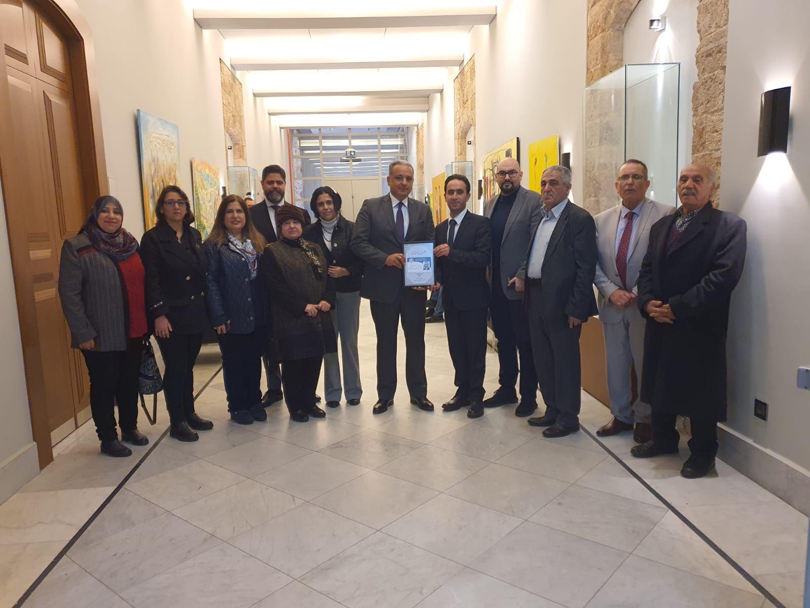 ضمّ الوفد الأمين العام الدكتور أحمد نزال ونائبة الأمين العام الأديبة ميراي شحادة وأعضاء الهيئة الإدارية: أ. بسام ضوّ- أ. يامن صعب- د. رزق الله قسطنطين- د. وفاء الأيوبي- د. درية فرحات- أ. أمل ناصر- د. طوني مطر- أ. رامز الدقدوقي- أ. ليندا نصار.