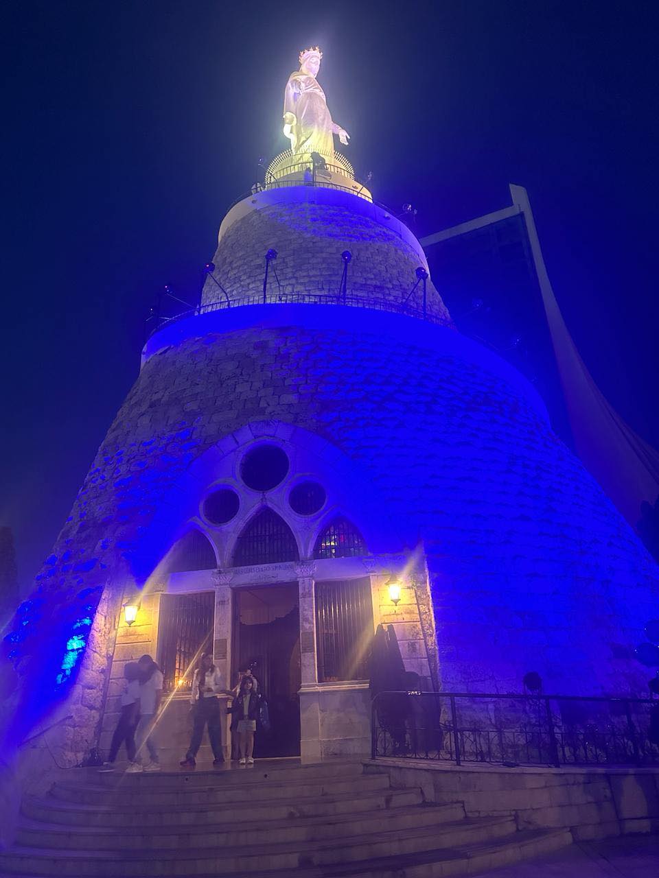تلا الذبيحة الإلهية إضاءة مزار السيدة العذراء باللون الأزرق.