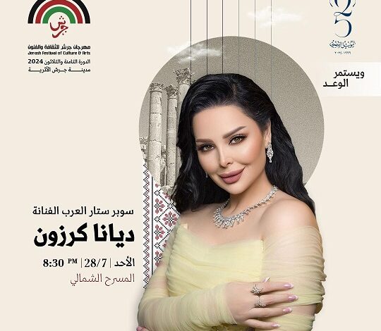 تشارك سوبر ستار العرب ديانا كروزن في مهرجان جرش 38 الذي يعقد هذا العام تحت شعار “ويستمر الوعد”.