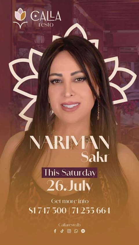 في واحدة من أجمل بقاع لبنان، وتحديدًا في عروس المصايف عاليه، يستعد مطعم “Calla Resto” لإستقبال ليلة فنية استثنائية، مساء السبت 26 تموز 2025، تُحييها الفنانة “ناريمان ” بمرافقة المايسترو القدير “محمود بو ناصيف”.