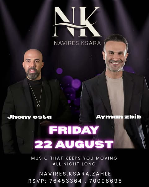 يستعد النجم اللبناني “جوني الإسطا ” لإحياء سهرة فنيّة مميّزة، يشاركه فيها النجم المحبوب “أيمن زبيب”، وذلك مساء الجمعة 22 آب 2025 في منتجع NAVIRES KSARA RESORT – زحلة.