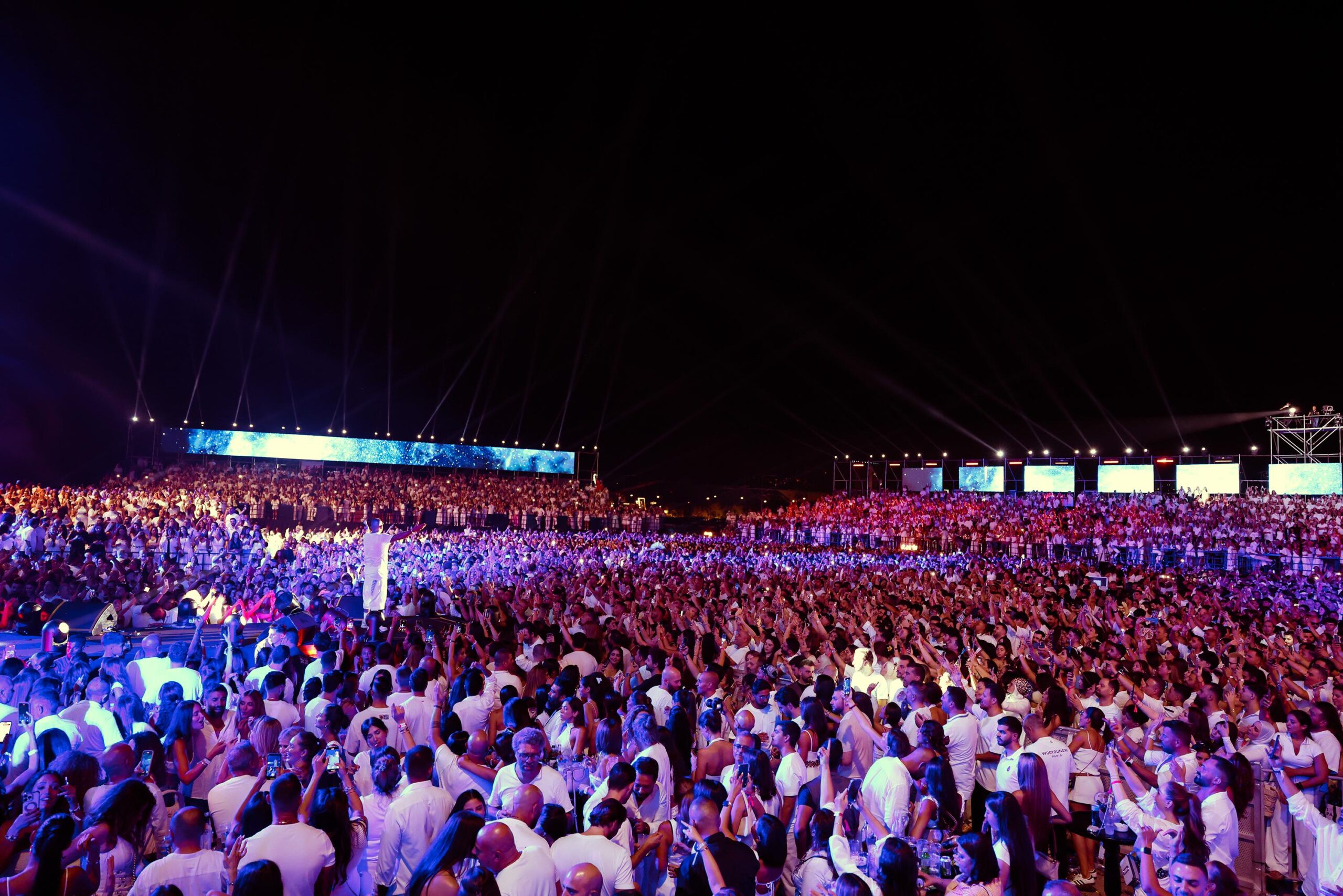 وصعد عمرو دياب على مسرح الحفل على أغنية “يا أنا يا لأ” وسط حالة من البهجة التي استقبله بها الجمهور والذي غنى معه على مدار ساعتين.