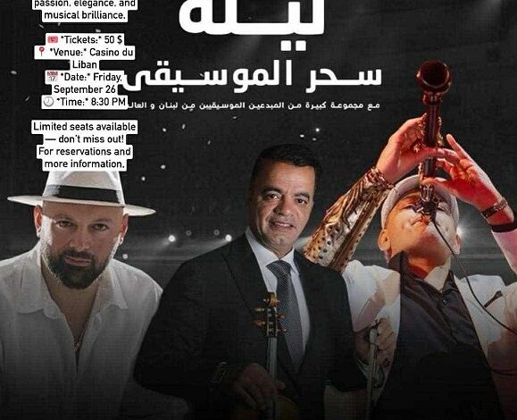 بمبادرة من أرض المبدعين ومؤسسها الأستاذ “كمال بكاسيني”، يحتضن كازينو لبنان مساء الجمعة 26 أيلول 2025 أمسية استثنائية بعنوان “ليلة سحر الموسيقى”، تجمع نخبة من كبار المبدعين الموسيقيين في لبنان والعالم.