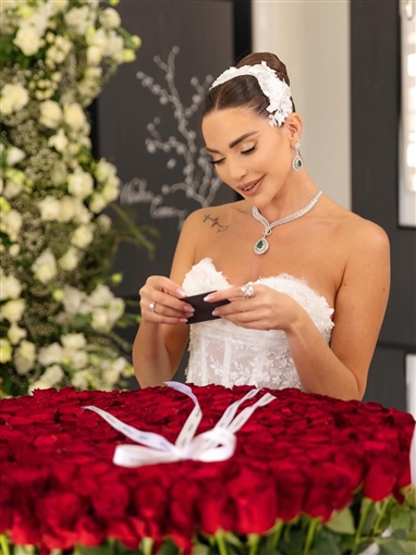 وشاركت جمهورها بصور لها استعرضت فستان زفافها.
