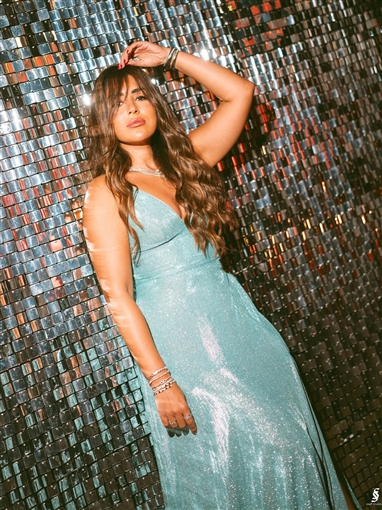 حلو الفن – أيتن عامر تتألق بإطلالة زرقاء لامعة في جلسة تصوير جديدة
