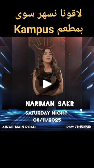تحيي النجمة اللبنانية “ناريمان صقر” سهرة غنائية رائعة ليل السبت في 8/11/2025 بـ مطعم Kampus – عيتات برفقة المايسترو المُبدع محمود بو ناصيف حيث تقدّم باقة جميلة من أروع الأغاني الجديدة والقديمة إضافة الى أغنياتها الخاصة.