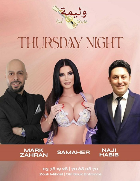 ويُقيم المطعم سهرة فنيّة مميّزة مساء الخميس 12/11/2025 يحييها النجم الرائع ناجي الحبيب والنجم المُبدع مارك زهران، وتشاركهما ملكة المسرح الراقصة الشرقية “سماهر” التي تُقدّم باقة من أجمل لوحاتها الراقصة، لتكتمل السهرة رونقًا وإبداعًا على أنغام الفرح والتميّز.