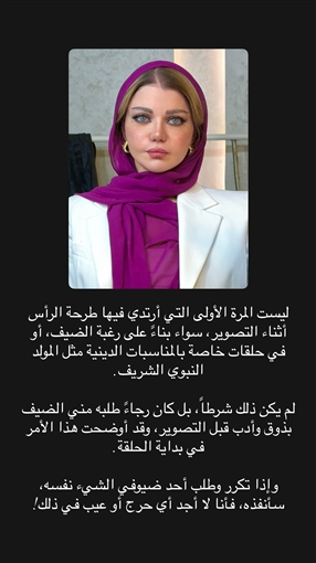 ونشرت ياسمين الخطيب صورتها عبر خاصية القصص القصيرة في حسابها على Instagram وكتبتك “ليست المرة الأولى التي أرتدي فيها طرحة الرأس أثناء التصوير، سواء بناءً على رغبة الضيف، أو في حلقات خاصة بالمناسبات الدينية مثل المولد النبوي الشريف”.