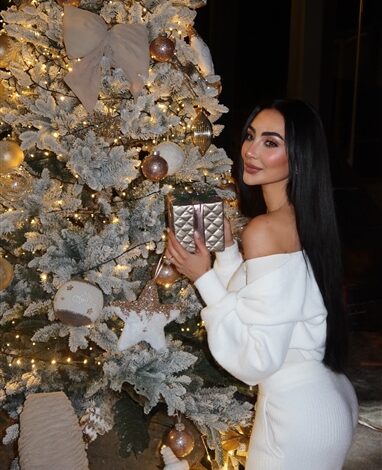 أما شجرة الكريسماس فزينتها باللون الأبيض أيضًا.