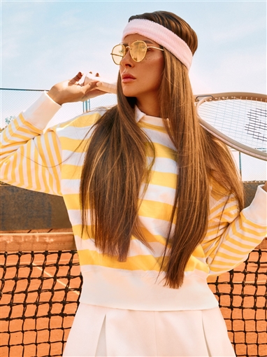 التقطت الصور في ملعب تنس، وبالطبع ارتدت ملابس رياضية تناسب اللعبة.