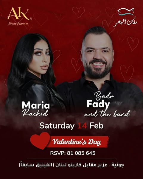 فبعد الاحتفال الفني الناجح الذي أحياه في مطعم “Roya”- – مغدوشة، يستعد بدر لإحياء حفلة مميّزة جديدة في مطعم “ملك البحر1′ في جونيه – غزير (مقابل كازينو لبنان)، وذلك ليلة عيد العشّاق في 14 شباط 2026، بمشاركة النجمة ماريا رشيد، في سهرة يُنتظر أن تكون حافلة بالطرب والمشاعر الرومانسية.