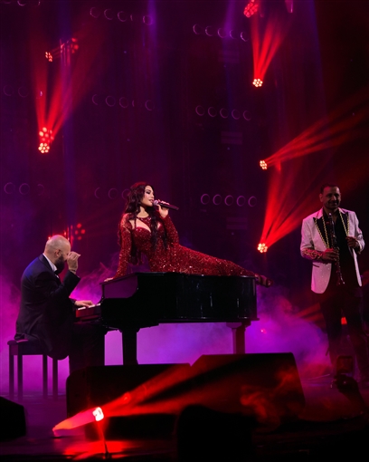 ونقلت هيفاء وهبي الحضور باستعراضاتها الفنيّة المُبهرة التي صُمّمت خصيصاً لحفل عيد الحب إلى عالمٍ من الإبداع والجمال والرومانسيّة الحالمة. كما أشعلت الأجواء بتقديم أغنية “بدنا نروق” بطريقة غير مُتوقّعة برفقة فرقة دبكة مباشرةً على المسرح.