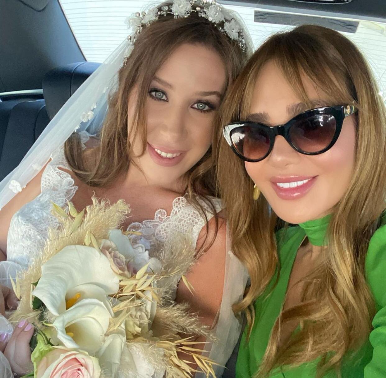 وظهرت سابين من خلال الصورة التي نشرتها عبر خاصية «الستوري» على انستغرام، وهي ترتدي فستان الزفاف الذي أظهر بطنها المنتفخ وهما يقطعان قالب الحلوى.