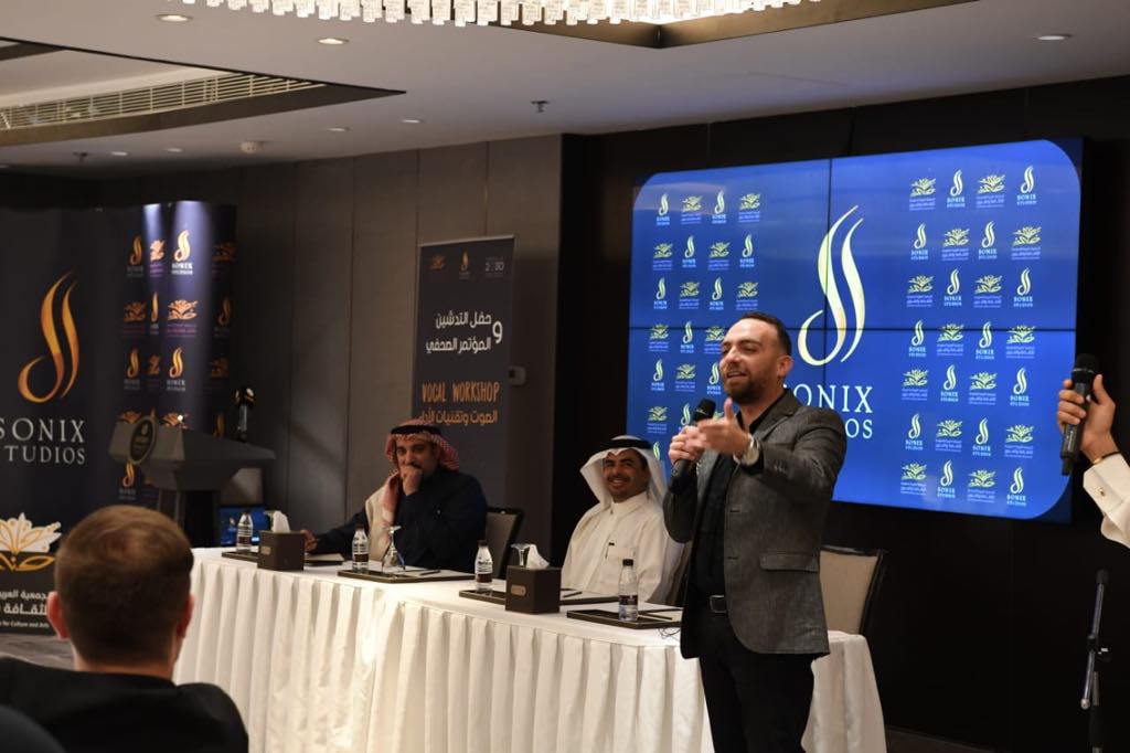 دشنت جمعية الثقافة والفنون بالدمام بحضور مدير الجمعية الأستاذ يوسف الحربي بالشراكة مع سونكس للإنتاج الإعلامي وقائع الحفل والمؤتمر الصحفي ( الصوت وتقنية الآداء ) بحضور مدرب الصوت طوني البايع .
