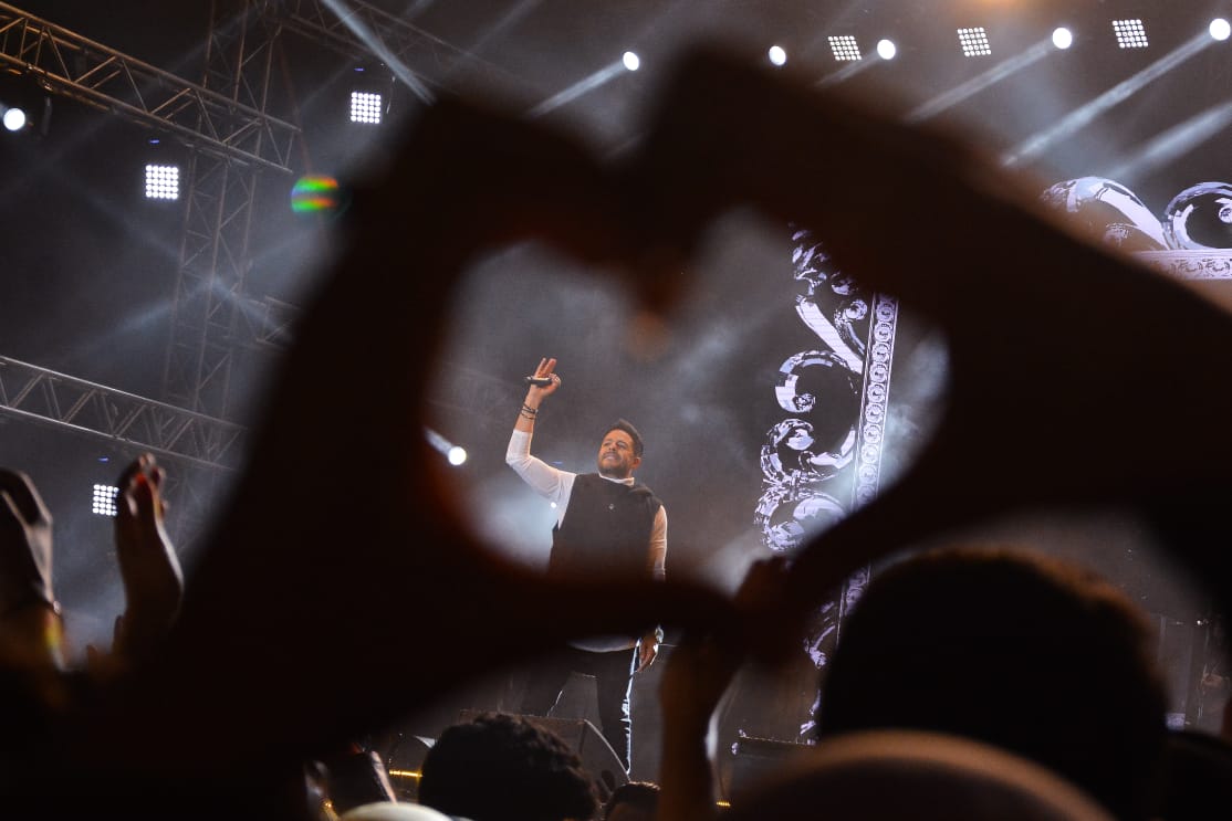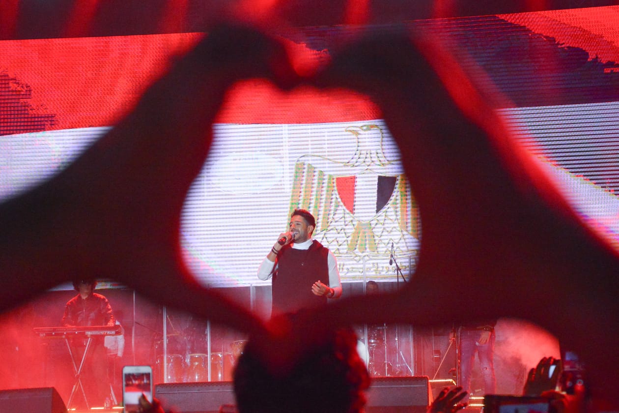 وكان الخبر الثاني والأكثر إثارة تقديمه لمقطع اغنية من الألبوم الجديد “بعنوان ” الكل عرف” التي رددها معه الجمهور وسط أجواء من البهجة والرومانسية .. وتقول كلمات الأغنية: ” الكل عرف إن أنا وانت بنحب بعض إلا انا وأنت .. إن بصوا لعينيك يشوفني ويلاقوا صورتك في عيوني.. ونادوني وسألوني هو الفرح هيكون أمتي .. ” والتي عبر الجمهور عن إعجابه بها بعلامة القلب بأيديهم والتي كانت بمثابة لغة الإشارة لهم طوال الحفل تعبيرا عن حبهم لاختياراته المتجددة دائمًا.