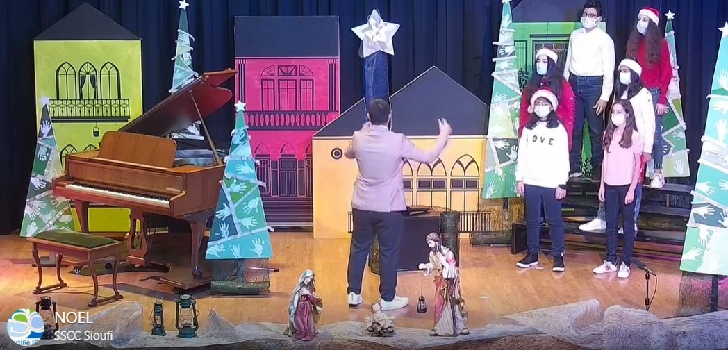 أقامت إدارة القلبين الأقدسين- السيوفي وقدامى المدرسة حفلاً ميلادياً ككل عام، أحيته جوقة طلاب المدرسة، ولكن هذه السنة كان مختلفاً إذ كان افتراضيّاً، وحضره الطلاب والأهالي والقدامى من منازلهم بسبب جائحة الكورونا، هذا الفيروس الذي غيّر بعادات العالم أجمع، إلا أن الإدارة أبت إلا أن تحتفل مع عائلة السيوفي بهذا العيد من أجل مشاركة الفرح والأمل.